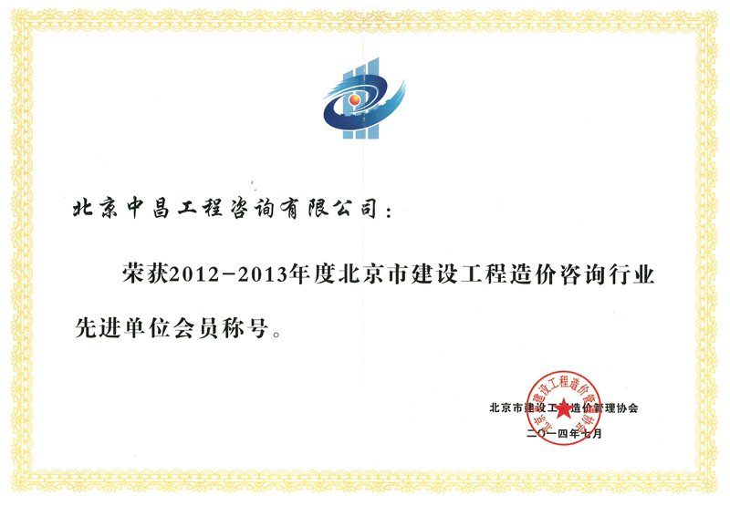 北京市建设工程造价咨询行业先进单位会员(2012-2013年度)